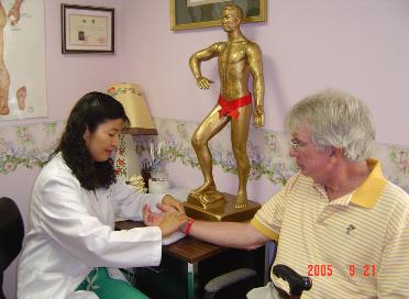 during the acupuncture session proper alignment. Doctor Yang uses the Impulse Technology.